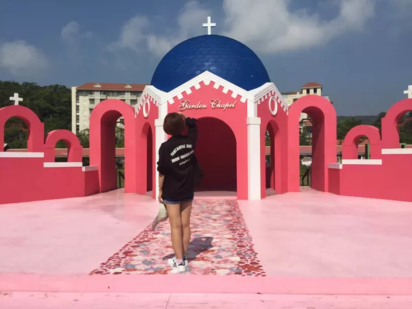浪漫的粉色教堂,搭配臺(tái)灣的藍(lán)天白云,隨手大片有木有?!聽導(dǎo)游介紹,這個(gè)教堂現(xiàn)在已經(jīng)成了很多新人的必拍地呢!