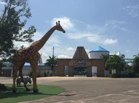 大門口的大個(gè)子長頸鹿先生,好像再告訴游客,這里是一個(gè)包含野生動(dòng)物園的游樂場(chǎng)哦!