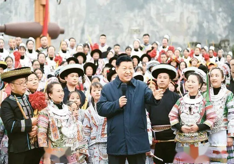2021年2月3日至5日,中共中央總書記、國家主席、中央軍委主席習近平來到貴州考察調研,看望慰問各族干部群眾,向全國各族人民致以美好的新春祝福。這是3日下午,習近平在畢節(jié)市黔西縣新仁苗族鄉(xiāng)化屋村文化廣場上,向全國各族人民、港澳臺同胞和海外僑胞拜年。新華社記者謝環(huán)馳 攝