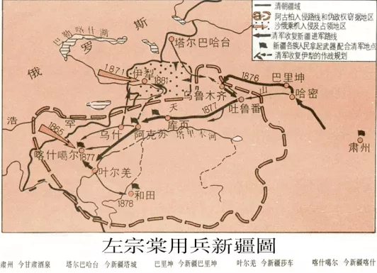 左宗棠所采取的兵分三路、速戰(zhàn)速決的用兵方式先后收復(fù)了烏魯木齊地區(qū)和吐魯番地區(qū)。因?yàn)檐娂o(jì)良好,得到了當(dāng)?shù)卮罅坷习傩盏膿泶髋c支持。清軍在老百姓的擁戴之下勢如破竹的收復(fù)了新疆!飽受外來蠻族欺壓的老百姓們終于迎來了好日子,從那時(shí)起,新疆各地出現(xiàn)了各種各樣大大小小的“左公祠”。
